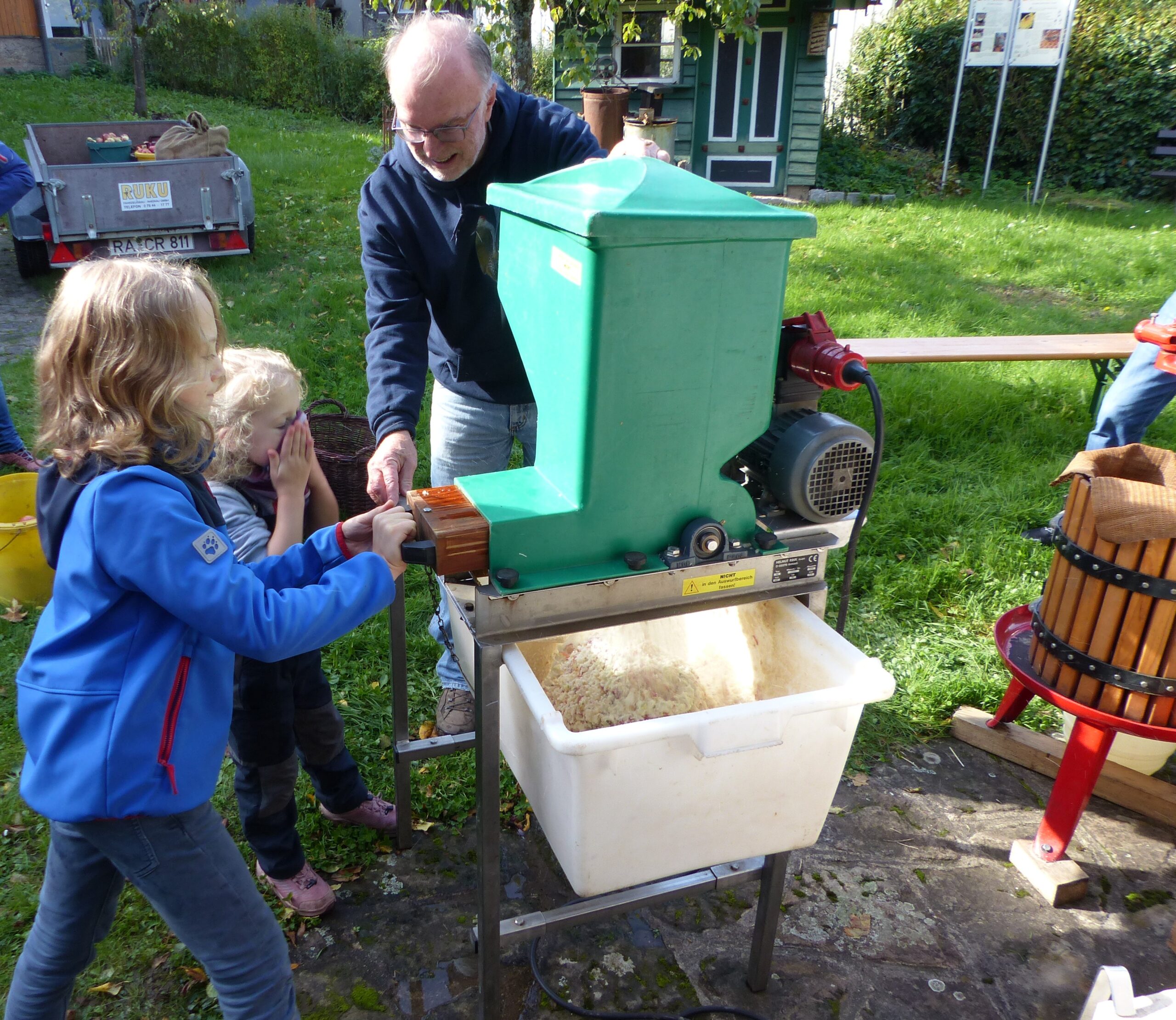 Auch im Garten herrscht reges Treiben. Dort werden zahlreiche Äpfel erst im großen Bottich gewaschen, dann in kleine Stücke zerteilt und anschließend in der Trotte ausgepresst. Das Ergebnis lassen sich nicht nur die Kinder schmecken, von den sich viele ganz sicher sind, dass sie einen solch leckeren Apfelsaft noch nie getrunken haben. Franz Tilgner, Initiator und Herr über die Trotte und das geschäftige Geschehen darum weiß, warum das so ist. „Einen frisch gepressten Saft erhält man selbst hier, in unserer ländlichen Region, nicht alle Tage. Das ist Natur pur.“