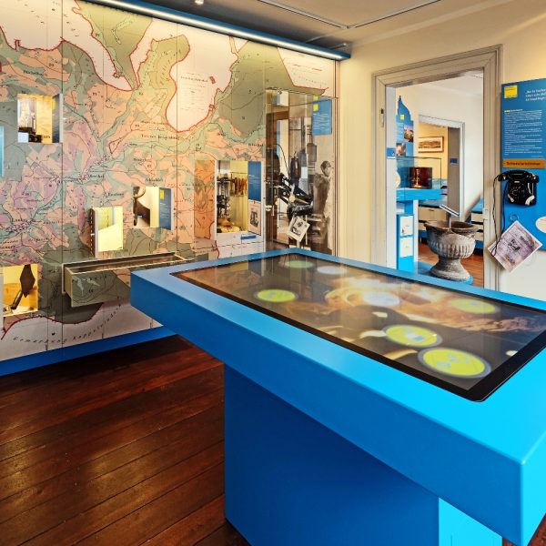 Ein weiteres Highlight stellt der Multitouch-Tisch dar, ein Alleinstellungsmerkmal in der hiesigen Museumslandschaft. Diese Computerstation soll die eigenständige Recherche nach Firmen, Betrieben, Personen, Vereinen, Flurstücken etc. ermöglichen. Der Tisch ist darauf angelegt, permanent erweitert zu werden, so dass neue Erkenntnisse und Rechercheergebnisse, auch von Privatpersonen und Schülern, jederzeit ein gepflegt werden können. Doch auch spielerischer Inhalte sind abrufbar. Es darf gepuzzelt und gerätselt werden, ob z.B. der Bühlertäler Ausdruck „Buggelronzer“ ein Schulranzen, ein Traktor, ein Raupenfahrzeug, oder ein Bergläufer ist. Sollten Sie sich das auch fragen: Es ist der Schulranzen.