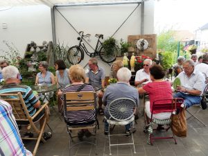 Die diesjährige Informationsfahrt des Fördervereins Museum Geiserschmiede Bühlertal e.V. führte die ehrenamtlichen Helfer nebst Ehepartnern und Vorstandschaft in südlichere Gefilde. Bei schweißtreibenden Temperaturen ging es zunächst nach Ettenheim ins Blumenhäfele. Ein mit viel Liebe zum Detail eingerichtetes urgemütliches Café in einem Blumenfachgeschäft – eine Augenweide, die vor allem die anwesende Damenwelt faszinierte.