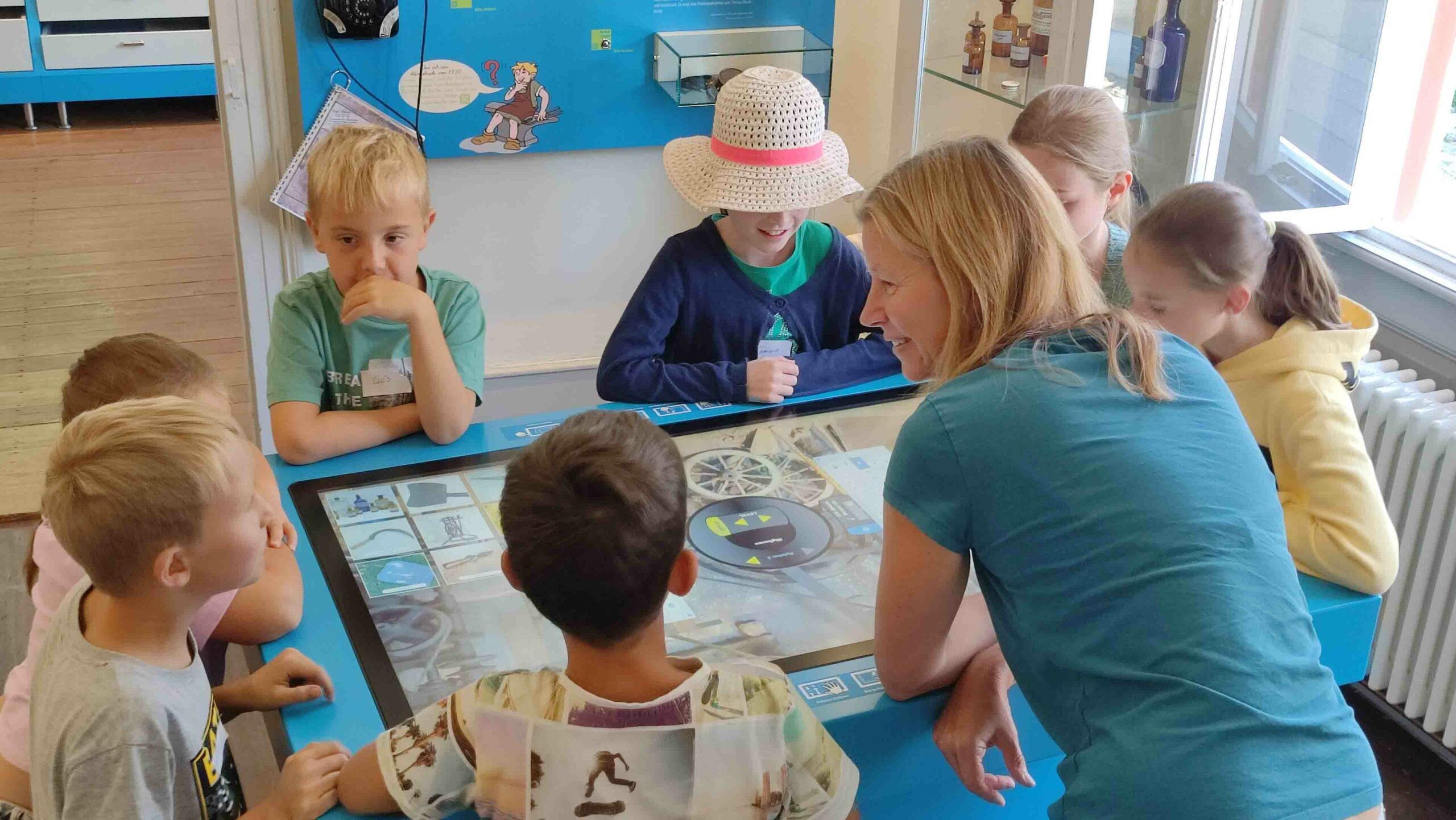 Nach all den Leckereien und Informationen rund um die Biene und deren Produkte führt Museumsleiterin Ina Stirm die Kinder noch in die Schmiede, in der die Funktionsweise der Transmission und die Gerätschaften der Schmiede untersucht werden. Den Abschluss des Vormittags bilden verschiedene Rätsel und Spiele im Multitouch-Tisch des Museums. Hier wird gerätselt, gepuzzelt und beim Memory-Duell geht es hoch her. „Die Stunden hier haben wirklich Spaß gemacht“, so das glaubwürdige Fazit der jungen Teilnehmer beim Verlassen des Hauses.