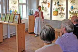 „Absolut sehenswert“, so das Fazit der Teilnehmer nach der Besichtigung der Glashütte in Buhlbach. Alljährlich unternehmen die ehrenamtlichen Helfer der Geiserschmiede eine Informationsfahrt. Gern werden Museen oder historische Einrichtungen besucht, so auch in diesem Jahr. Am 22. September geht es per Bus zur Glashütte nach Baiersbronn-Buhlbach, deren Gebäude sich im Besitz der Gemeinde befinden und vom Förderverein betrieben werden. Diese Konstellation ist identisch mit der des Bühlertäler Museums. Weitere Ähnlichkeiten tun sich beim Besuch auf, wenn es um die Anzahl und Motivation der Ehrenamtlichen und noch mehr, wenn es um die Objekte zum Thema Haushalt früher geht. Zahlreiche identische Objekte lagern im Depot des Bühlertäler Museums, wo das Motto lautet: Weniger ist mehr. In Buhlbach wird eher geklotzt und so strotzen die Wohnräume vor allerlei Gegenständen, die das häusliche Leben in vergangenen Zeiten veranschaulichen. Die älteren Besucher zum Schwelgen in Erinnerungen motivieren und ihr Wissen weiterzugeben, dies Konzept scheint aufzugehen. Manche Gäste verweilen lange bei diesem und jenem Gegenstand, lauschen gebannt den Erläuterungen der kundigen Gästeführerin Gudrun Nikko und müssen sich bei Fehlverhalten schon mal im Schulzimmer über die Bank lehnen, um die verdiente Strafe mit dem Rohrstock zu empfangen.