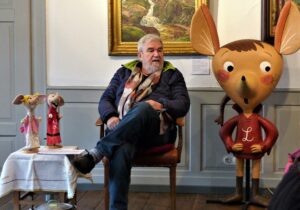 Mit tragender Stimme und entsprechender Gestik untermalt, den Sauerkrauttopf vor den Füßen, umgeben von seinen Mäusefiguren saß der Rastatter Buchautor Hans Peter Faller auf dem Sessel, erzählt und durchlebt förmlich eine seiner neuesten Geschichten von Ludwig der Stadtmaus, die eigentlich in Rastatt wohnt. Handlungsort der Geschichte ist dennoch Bühlertal, allerdings vor ungefähr 130 Jahren. Die unterhaltsamen Erzählungen des Autors sind das eine. Sein Anspruch, den jüngeren Generationen die Geschichte ihrer Heimat nahezubringen, das andere. Folgerichtig beginnt jede seiner Geschichten mit der Skizzierung des historischen Ortes und der Lebensumstände in der jeweiligen Epoche. Bildung wird kindergerecht verpackt und mit spannenden und immer auch lustigen Geschichten garniert.