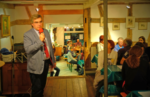 Heinz Wendling unterhielt mit humoristischen und pointierten Erzählungen zu den Freuden des Eltern- und Großelternglückes und zu denen einer gelungenen Nachbarschaft. So oder so terrorisiert durch die starke Geräuschentwicklung der neuen Erdenbürger oder durch Nachbars Lumpi. Marianne Riebold widmete sich der Kinderliteratur und las wundervoll vorgetragen aus ihrem Buch „Spatzenabenteuer“.