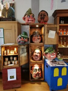 Noch bis kommenden Mittwoch, den 02.03.2022 sind die Schwellköpfe aus den Bühlertäler Fasnachtsumzügen vergangener Tage in der „Närrischen Zunftstube“ bei Cum Natura in Bühl zu sehen.