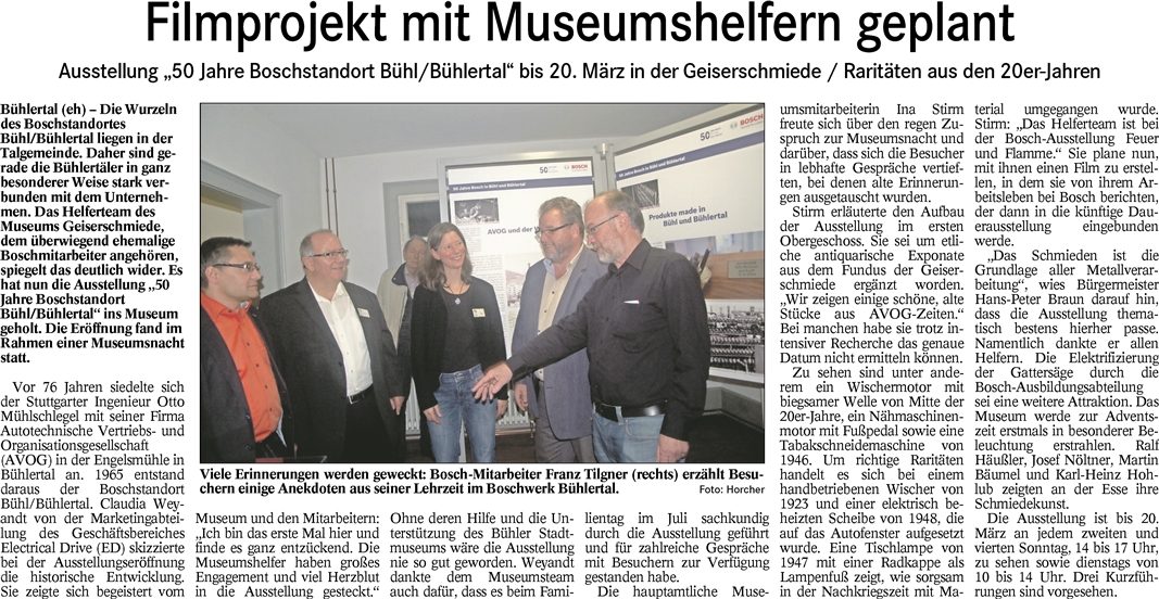 Höhepunkt war die Eröffnung der Ausstellung „50 Jahre Bosch in Bühl und Bühlertal“.
