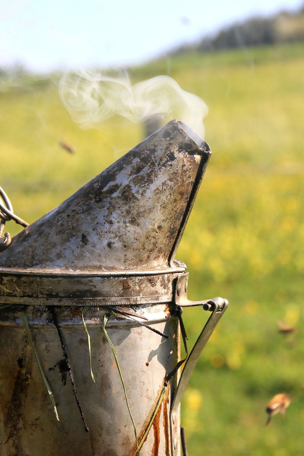 Imkerin Uli Braun wollte den Kindern anhand der Waben das Bienenleben erklären. Dazu musste sie aber zuerst einen Smoker in Gang setzen. Die Kinder halfen durch das Betätigen des Blasebalgs, das Feuer zu entfachen, sodass das Brennmaterial bald heftig zu rauchen anfing. Uli Braun erklärte, dass der Imker damit einen Waldbrand vortäusche. Denn die im Wald heimischen Bienen verlassen bei Rauchentwicklung ihren Stock. Dafür saugen sie ihren Honigmagen voll mit Vorrat und sind erst einmal beschäftigt. Durch dieses Täuschungsmanöver kann der Imker gefahrlos an die Waben der Bienen heran, so auch Uli Braun. Sie zeigte den Kindern erst einen Rahmen vom Rand des Bienenstockes. Hier konnten die bieneninteressierten Mädchen und Jungen sehen und probieren wie der Honig in den Waben eingelagert und mit Wachs verschlossen wird.